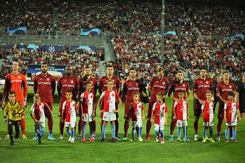 CFR Cluj a pierdut manșa tur a play-off-ului din UEFA Champions League împotriva campioanei Cehiei, Slavia Praga. Partida retur se va disputa săptămâna viitoare.